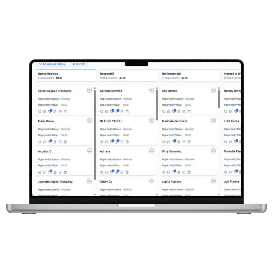 Permite que cada miembro de tu equipo trabaje con su propio CRM, mientras tú mantienes el control total. Visualiza el flujo completo de atención, seguimiento y proyección de cierres para apoyar y motivar estratégicamente a tu red. Todo centralizado. Todo optimizado. Sin complicaciones.